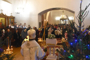 Во время Божественной литургии было зачитано Рождественское послание клиру, монашествующим и мирянам Святейшего Патриарха Московского и всея Руси Кирилла.